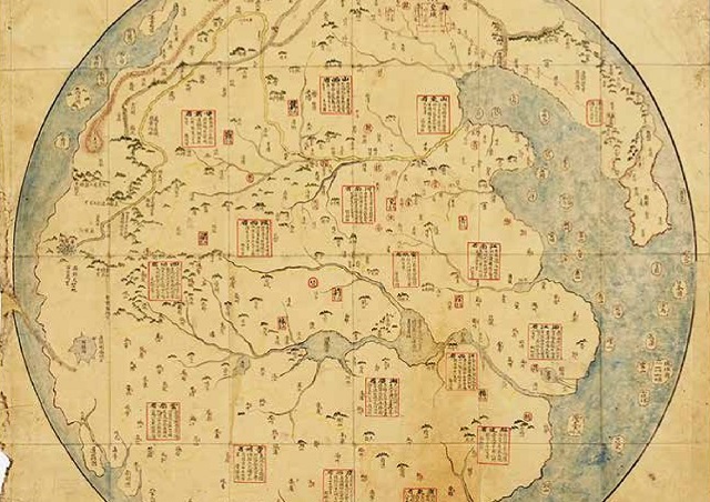 Version of a ‘circular world map’, Korea, late 19th century. Image: MARKK.